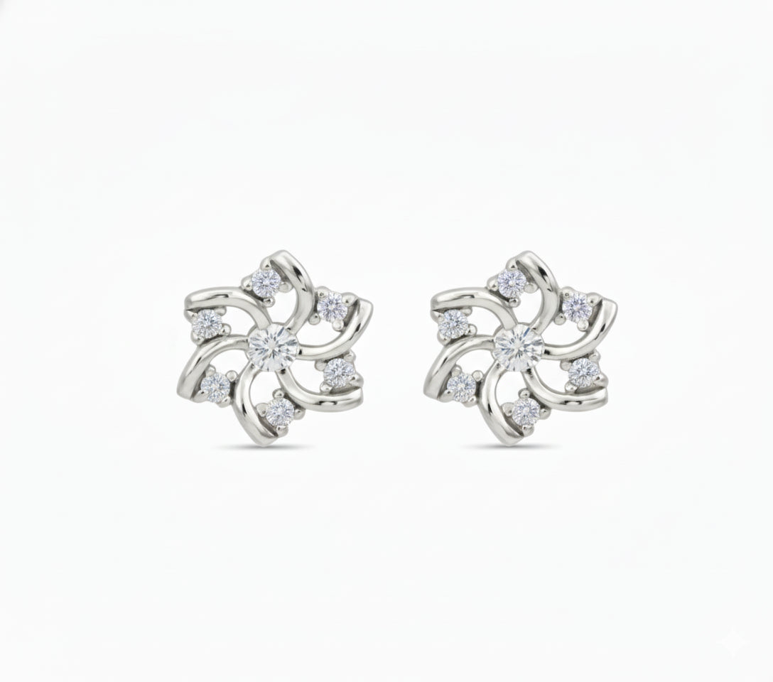 9ct White Gold Diamond Snowflake Stud Earrings.