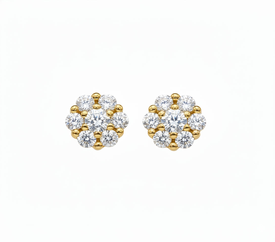 9ct Yellow Gold Diamond Cluster Stud Earrings.