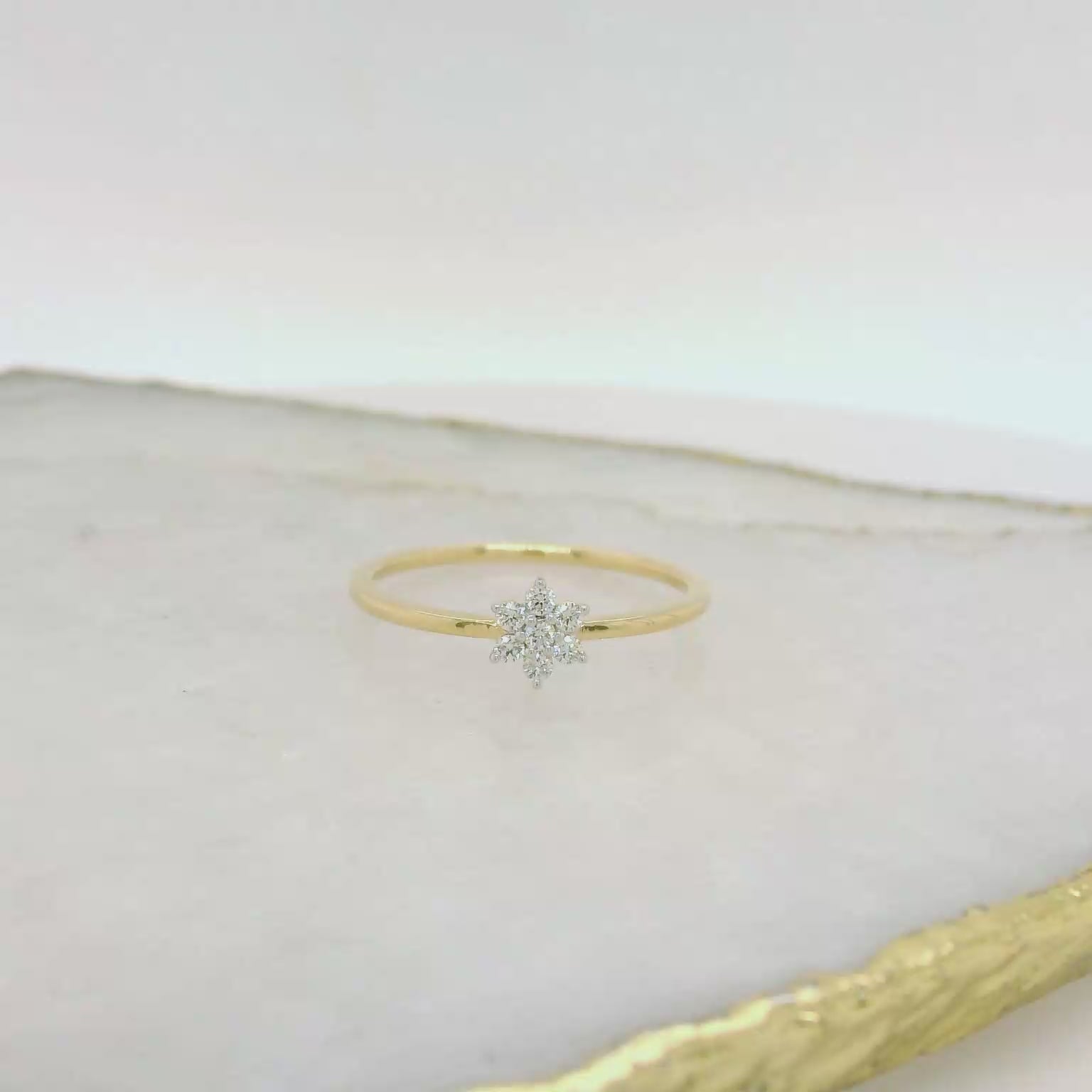 9ct Yellow Gold Diamond Flower Dress Ring.
