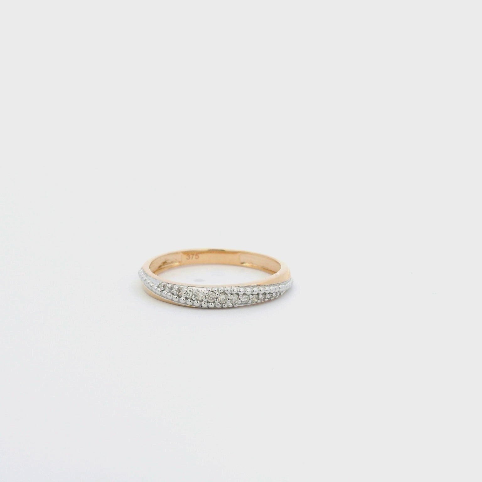 A refined piece with radiant charm, this 9ct yellow gold diamond ring captures the perfect balance between classic design and modern sophistication. The gently tapered band features a row of brilliant-cut diamonds in an illusion setting, creating the look of a continuous shimmer of light across the finger.