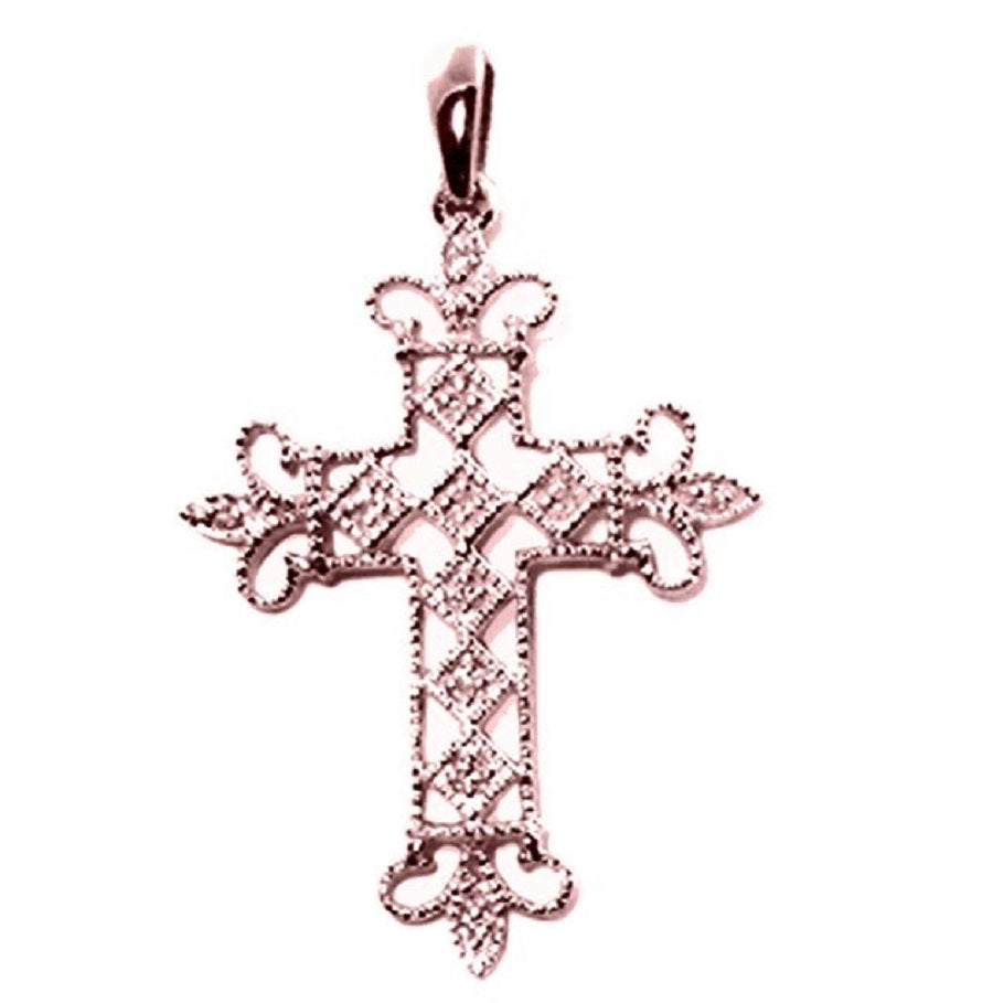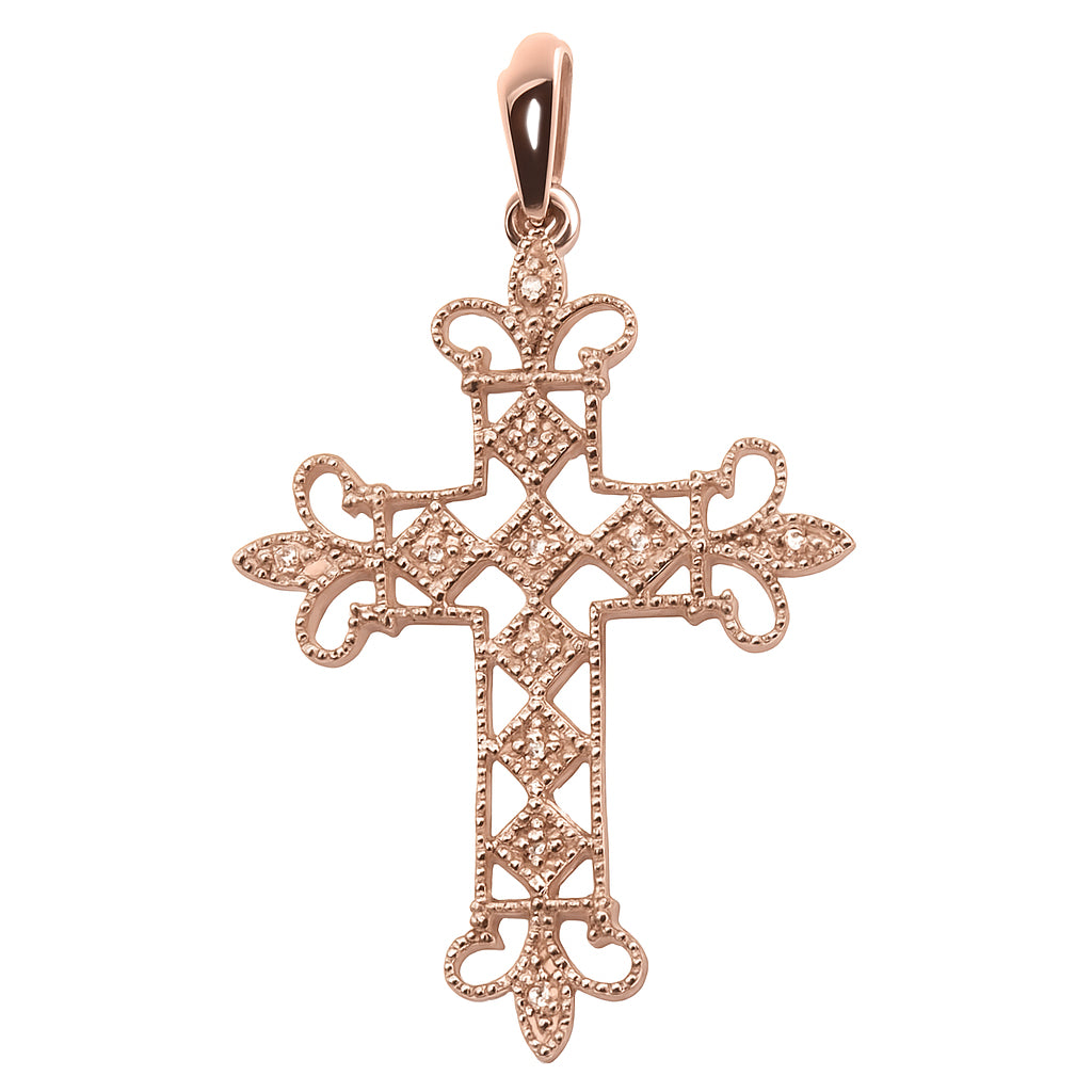 Embrace timeless elegance with this exquisite 9ct rose gold cross pendant. Crafted with meticulous attention to detail, this beautiful piece features a delicate openwork design, adorned with 11 sparkling diamonds. The diamonds are securely set in a grain setting, enhancing their brilliance.