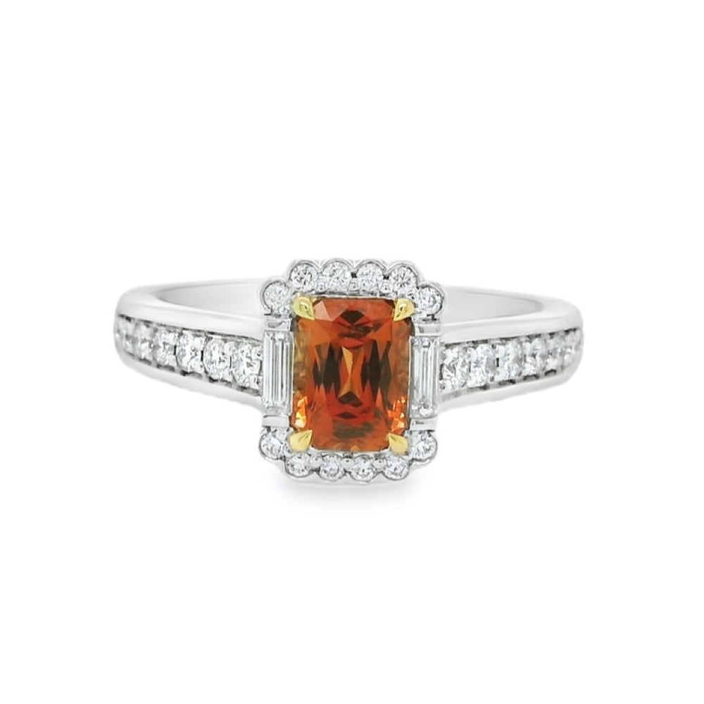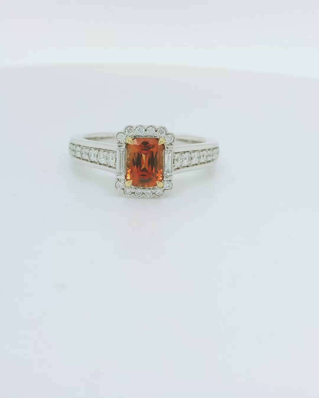 Material: 18ct White Gold, Orange Sapphire & Natural Mined Diamonds.
