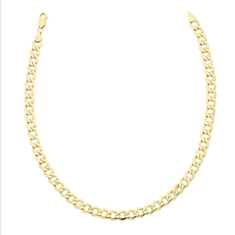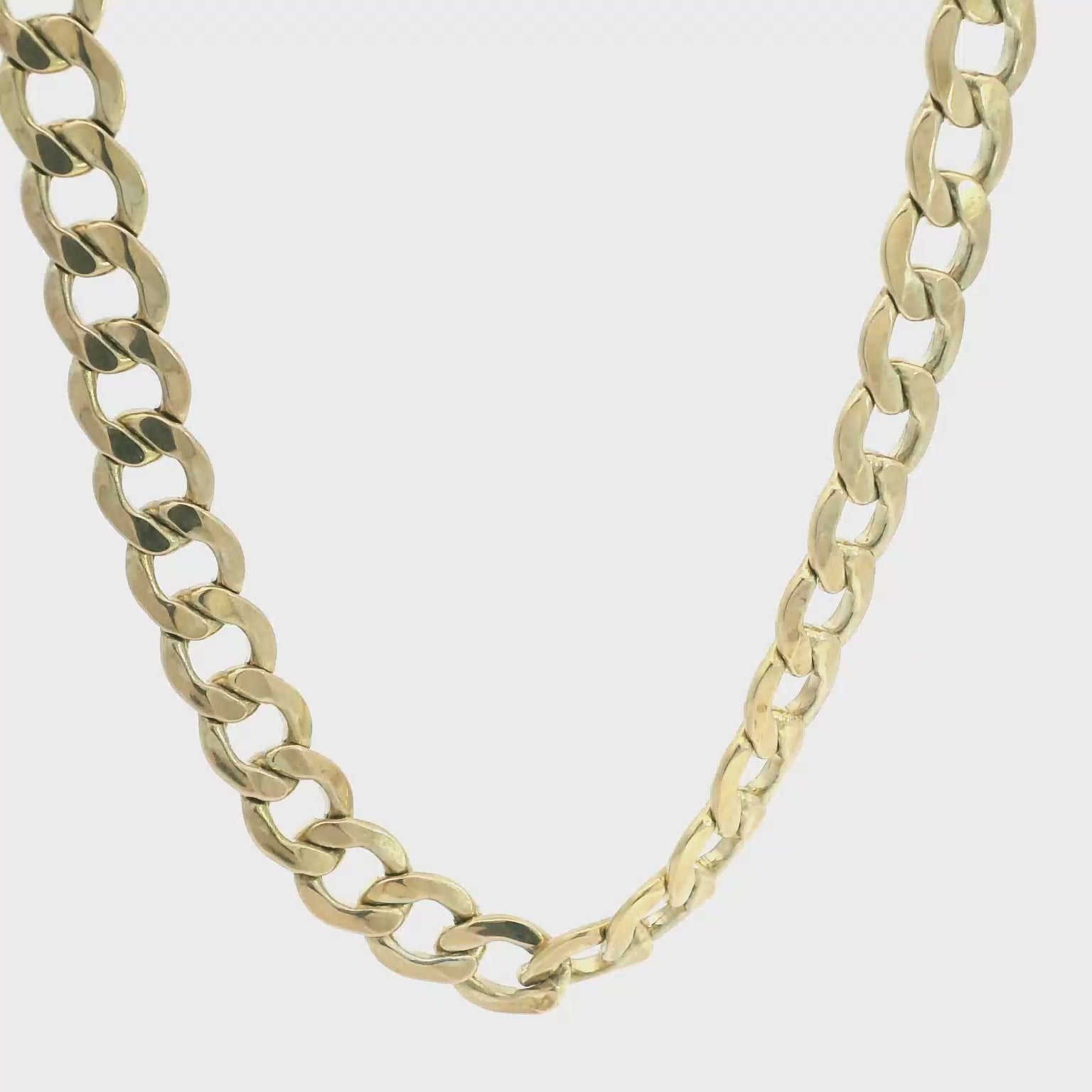 9ct Yellow Gold Silver-Filled Bevel Curb Chain – 8mm wide - 55cm Length.