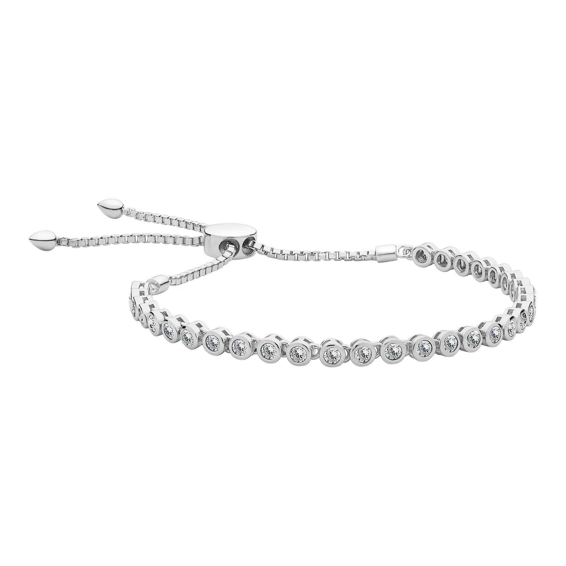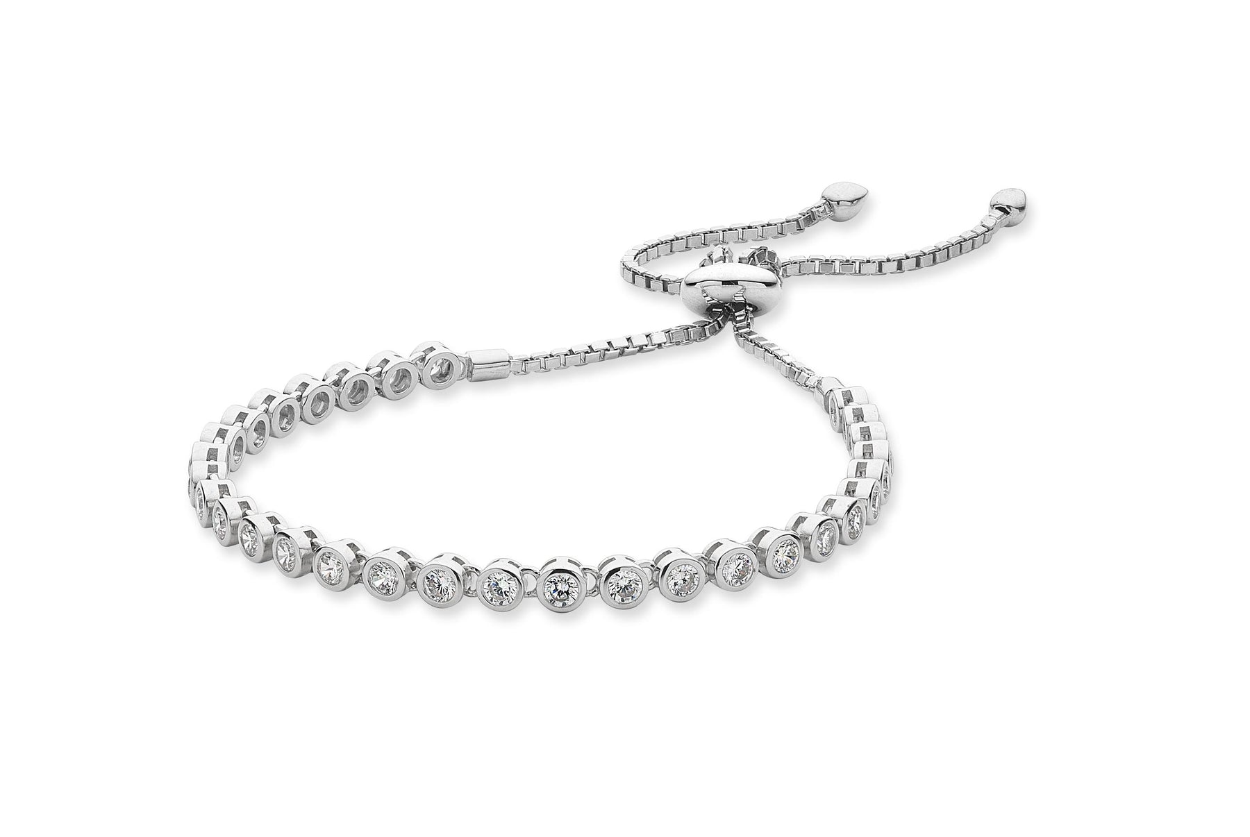 Sterling Silver Multi Cubic Zirconia Bezel Set Bracelet with Slider Fitting.