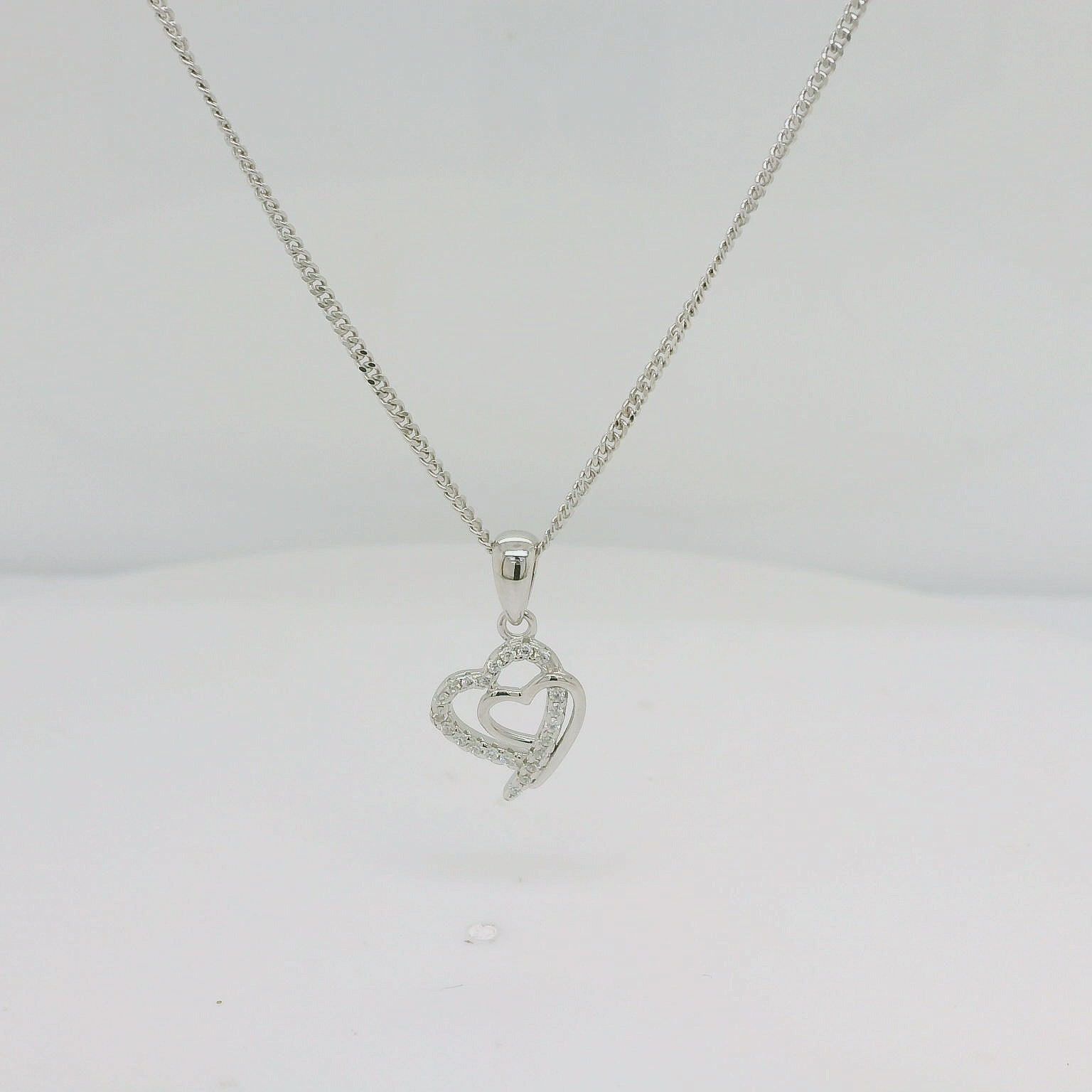 Sterling Silver Double Open Heart Pendant & Necklace.