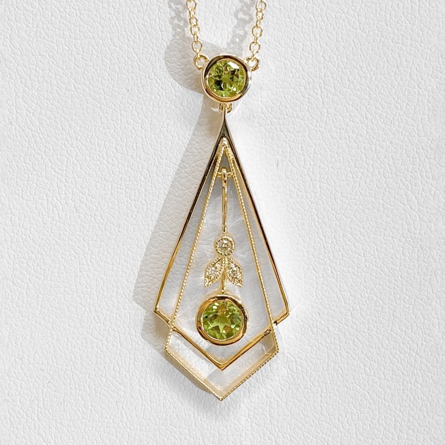 9ct Gold Peridot & Diamond Vintage Inspired Pendant.