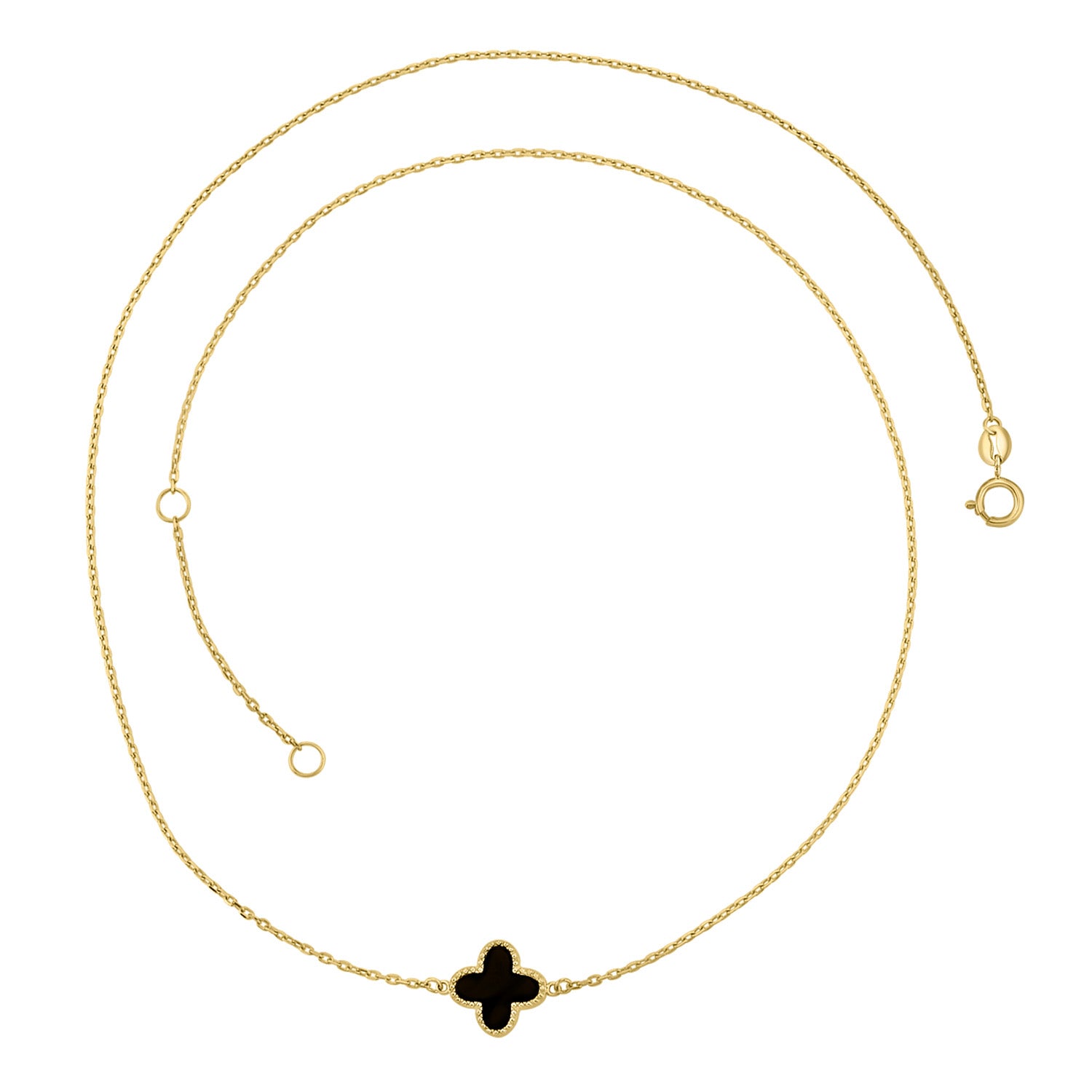 9ct Yellow Gold Black Onyx Clover Necklace – 45cm