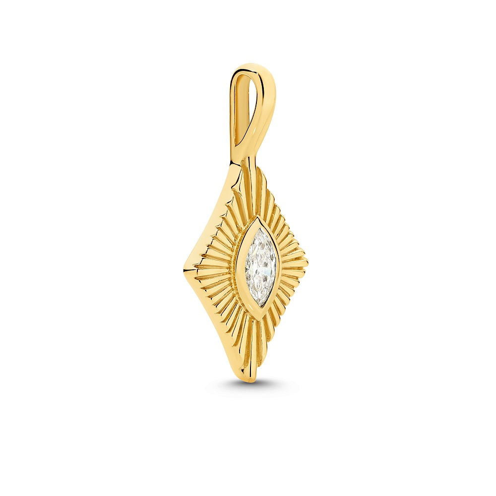 The elongated marquise silhouette symbolises vision and elegance, while the radiant detailing adds texture and timeless charm. Designed to be versatile, this pendant layers effortlessly with your everyday favourites or shines beautifully on its own.