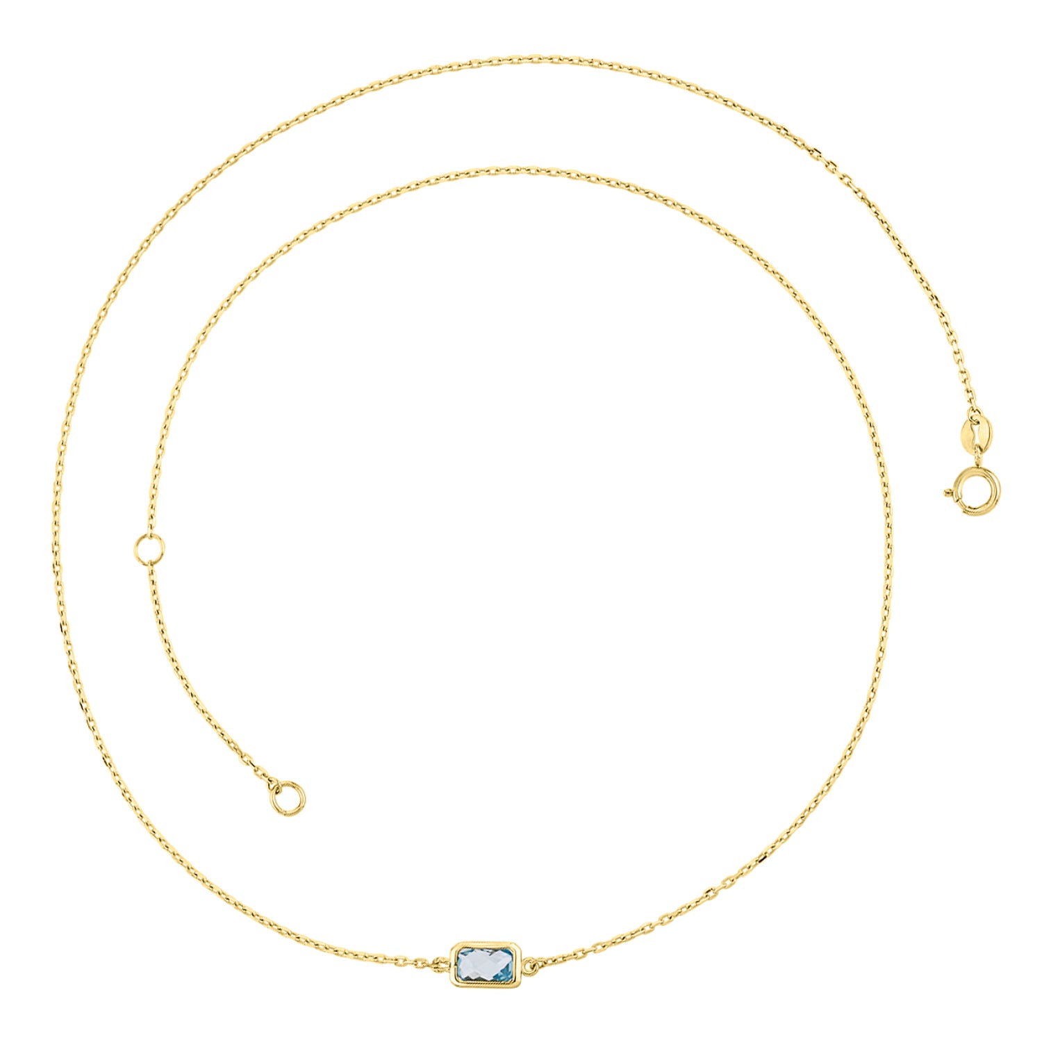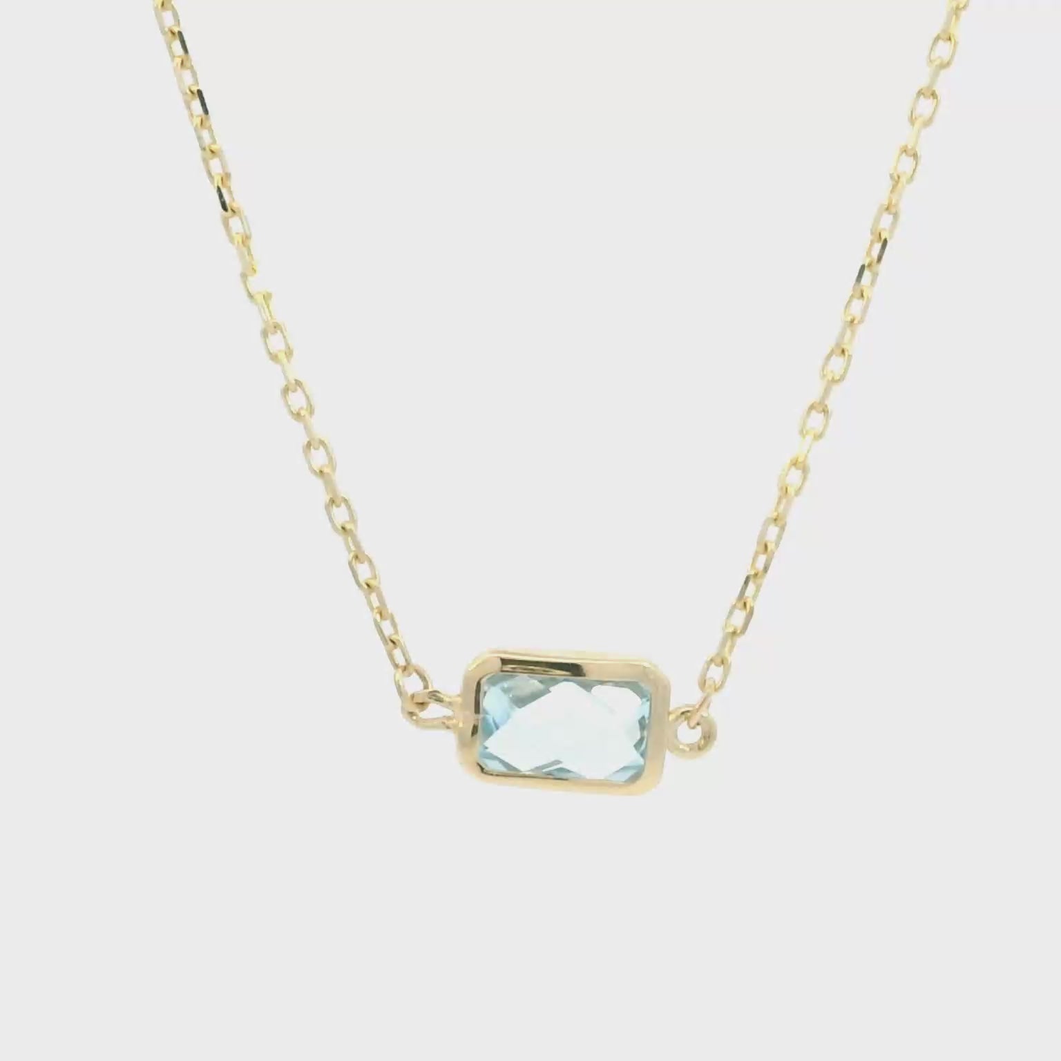 9ct Yellow Gold Sky Blue Topaz Necklace – 6x4mm Bezel Set