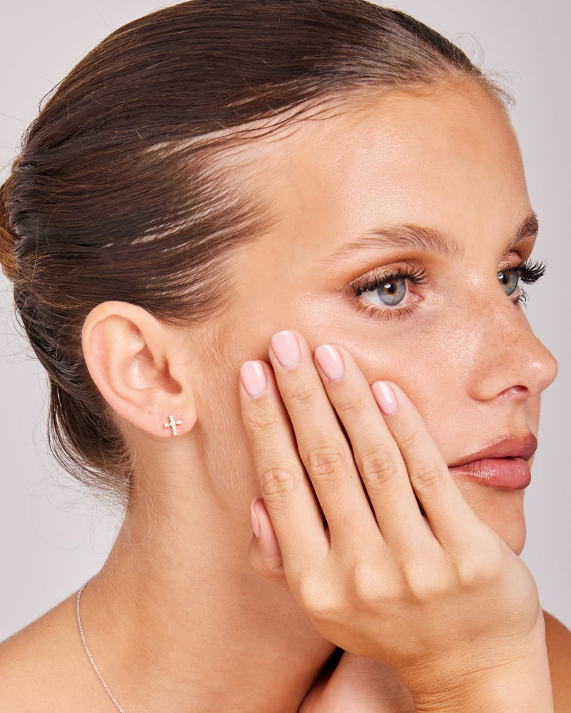 Elegant and petite at 8 x 6mm, these studs offer the perfect balance of subtle shine and heartfelt meaning — a beautiful expression of faith, protection, love, or personal connection.