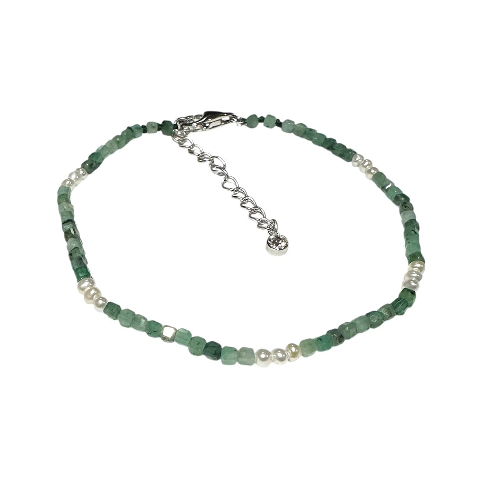 Seed Emerald & White Oval Freshwater Pearl Bracelet.