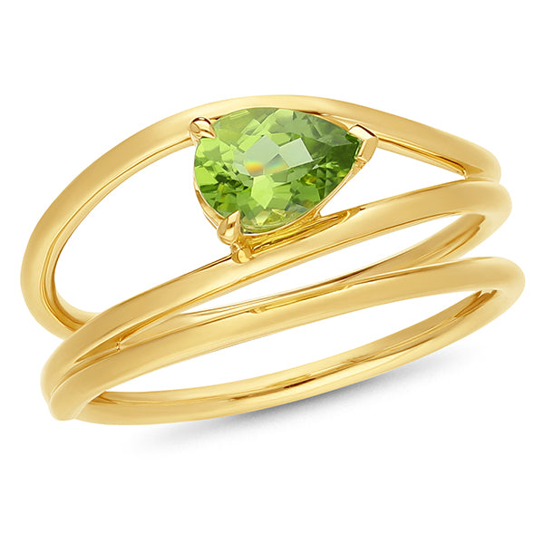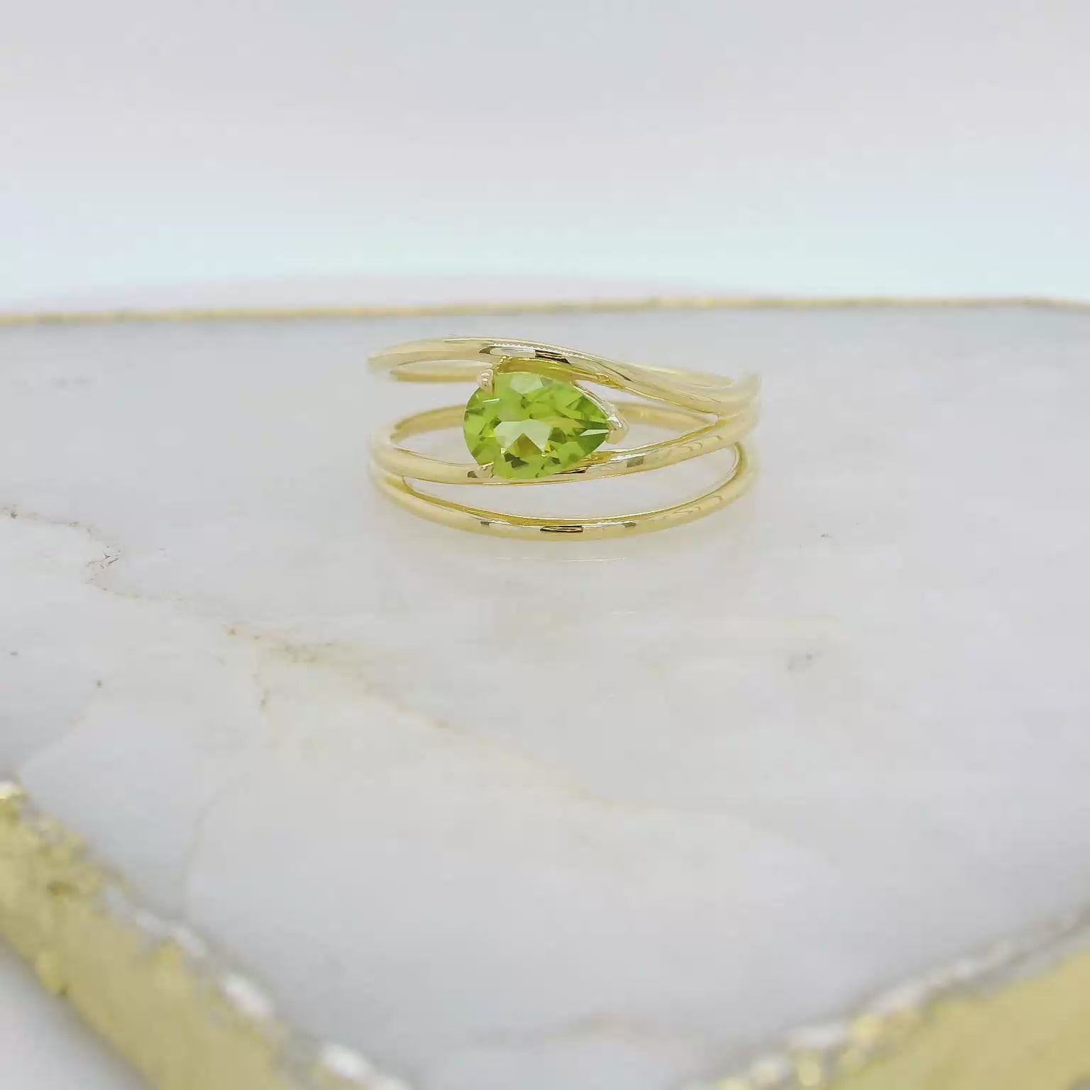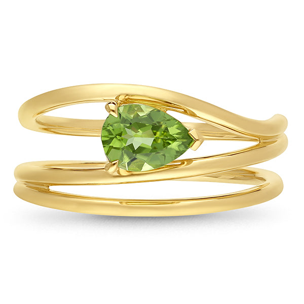 9ct yellow Gold Pear Peridot Ring Open Wide Band.